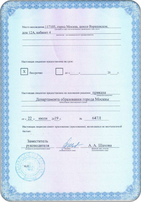 ЛИЦЕНЗИЯ НА ПРАВО ОСУЩЕСТВЛЕНИЯ ОБРАЗОВАТЕЛЬНОЙ ДЕЯТЕЛЬНОСТИ